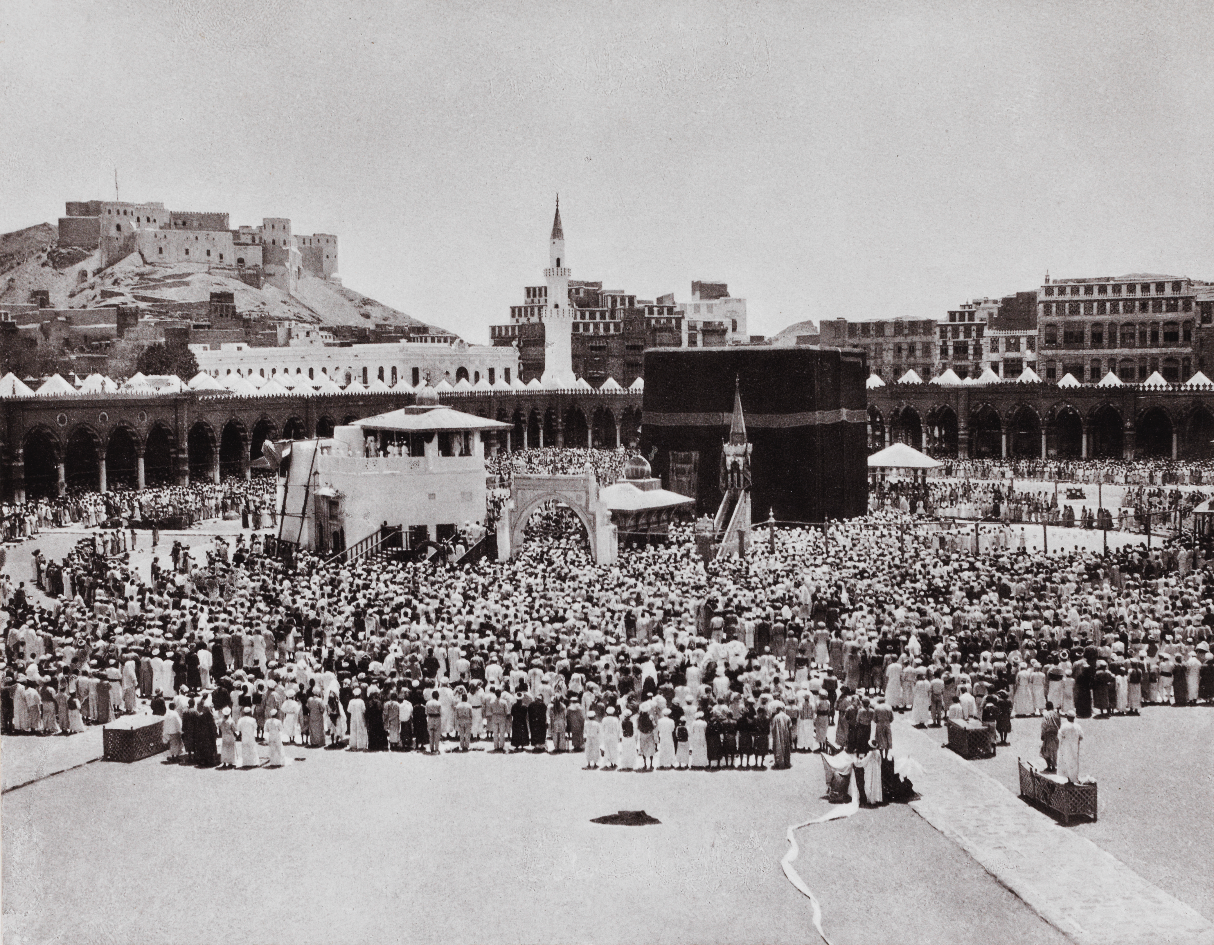 Bilder aus Mekka was published in 1889 by the Dutch orientalist Christiaan Snouck Hurgronje. Consisting of 20 collotype prints mounted on 18 leaves, it is one of the earliest photographic records of the Hajj, preceded only by photographs taken in 1881 by Muhammed Sadiq Bey. Bilder aus Mekka came one year after Bilder-Atlas zu Mekka. This was a collection of lithographs including images predominantly of Mecca and portraits of pilgrims, taken by Snouck himself on his research trip to Jeddah and Mecca between August 1884–August 1885. Alongside this he published a work that focussed on the history of Mecca and the origins of Islam. Following on from the publication of these two volumes, and having not been able to photograph the hajj himself, Snouck used images taken by a Meccan physician named ‘Abd al-Ghaffar of the Hajj of August 1888 to publish Bilder aus Mekka.