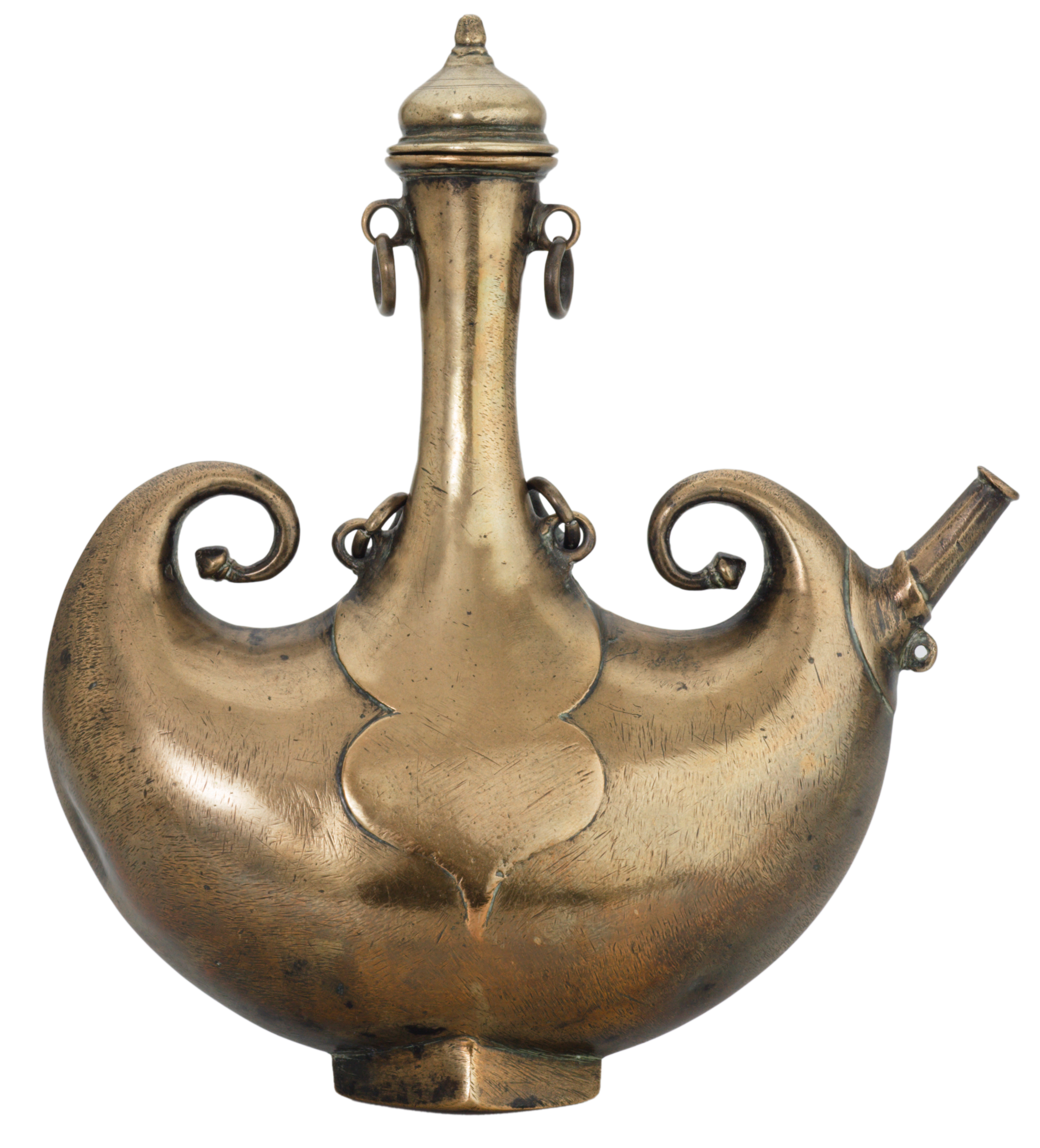 Cast brass pilgrim flask with lid on Collections Sphere from
