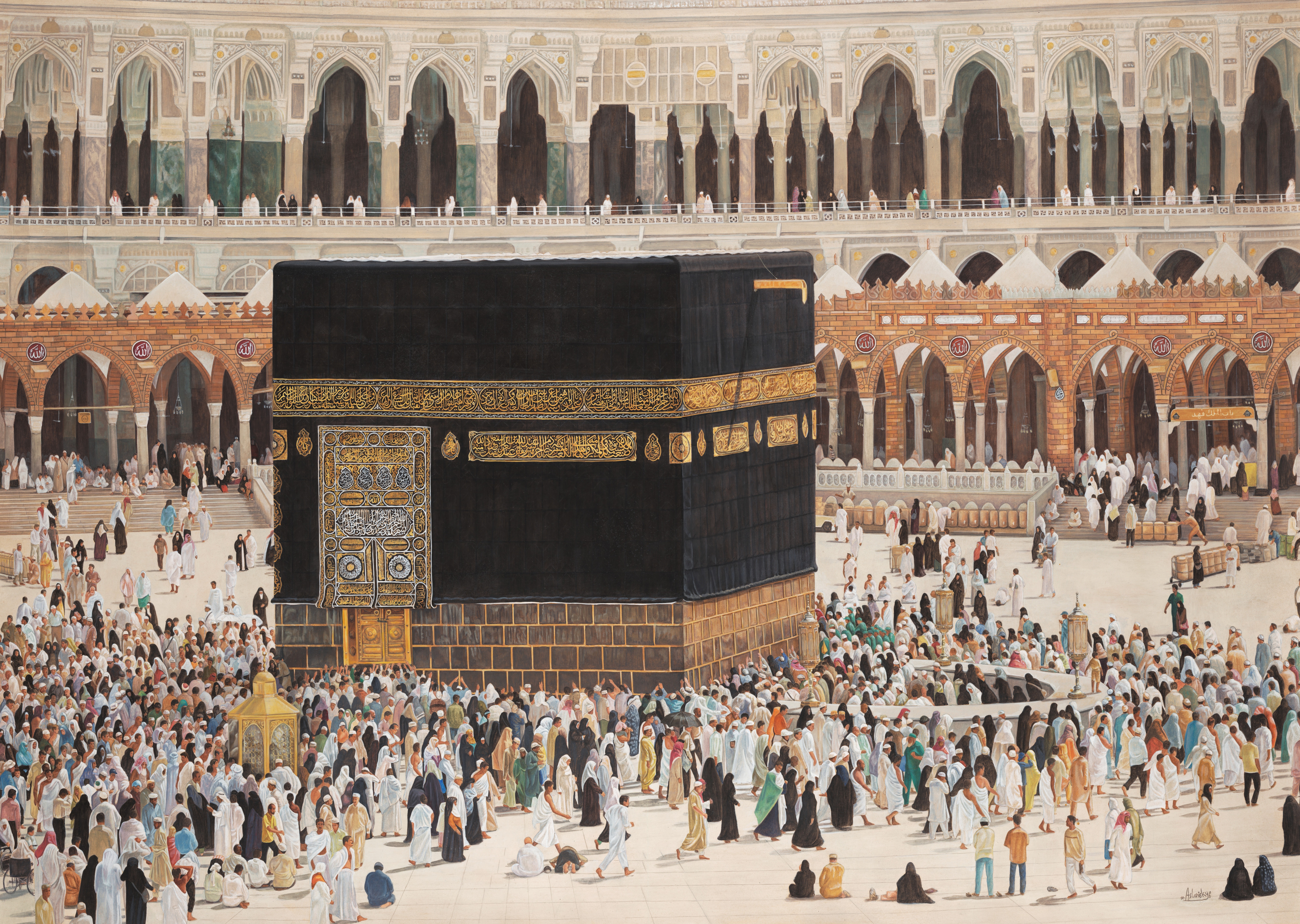 Large watercolour painting of the courtyard of the Masjid al-Haram on Legacy-collections Sphere from
